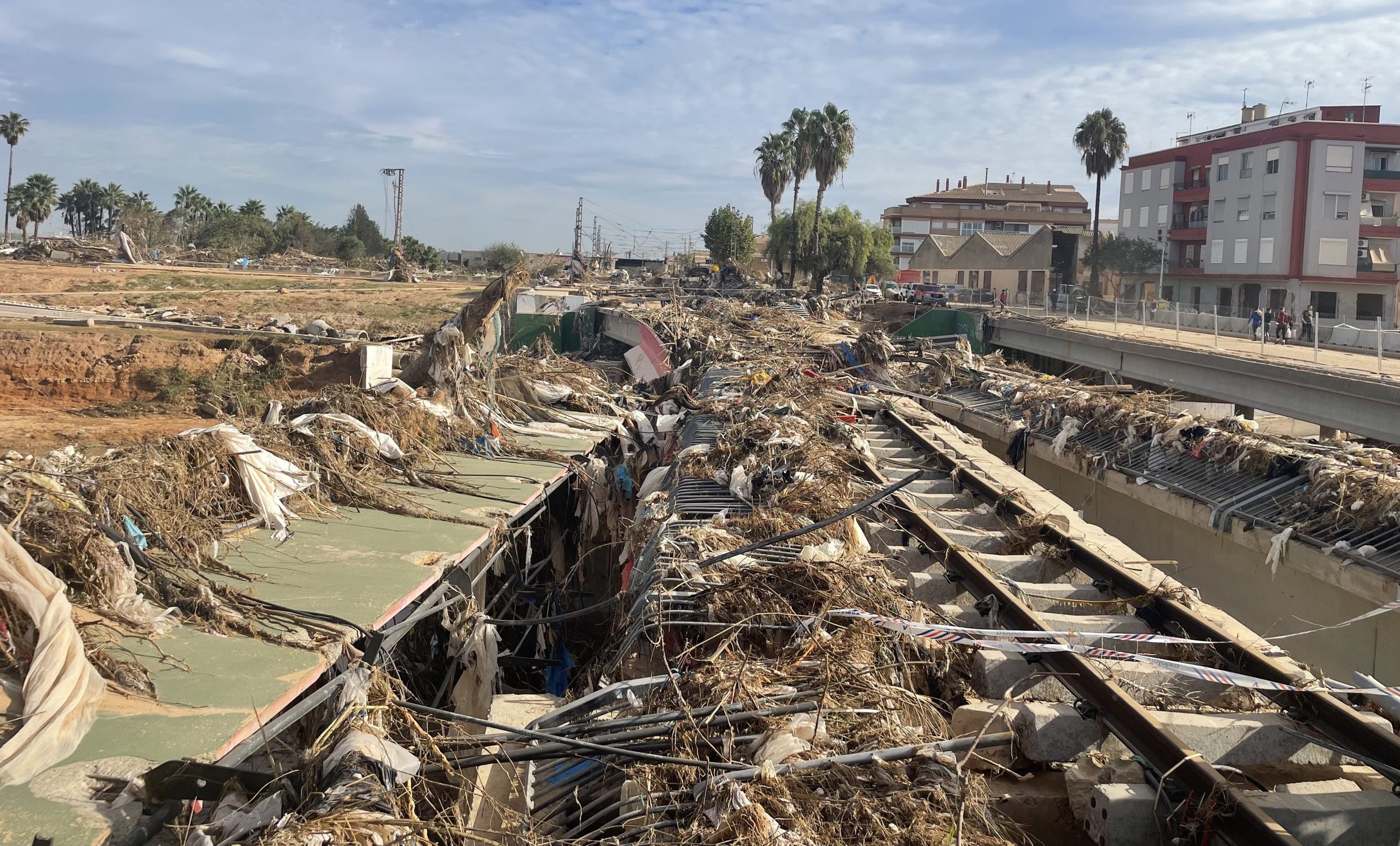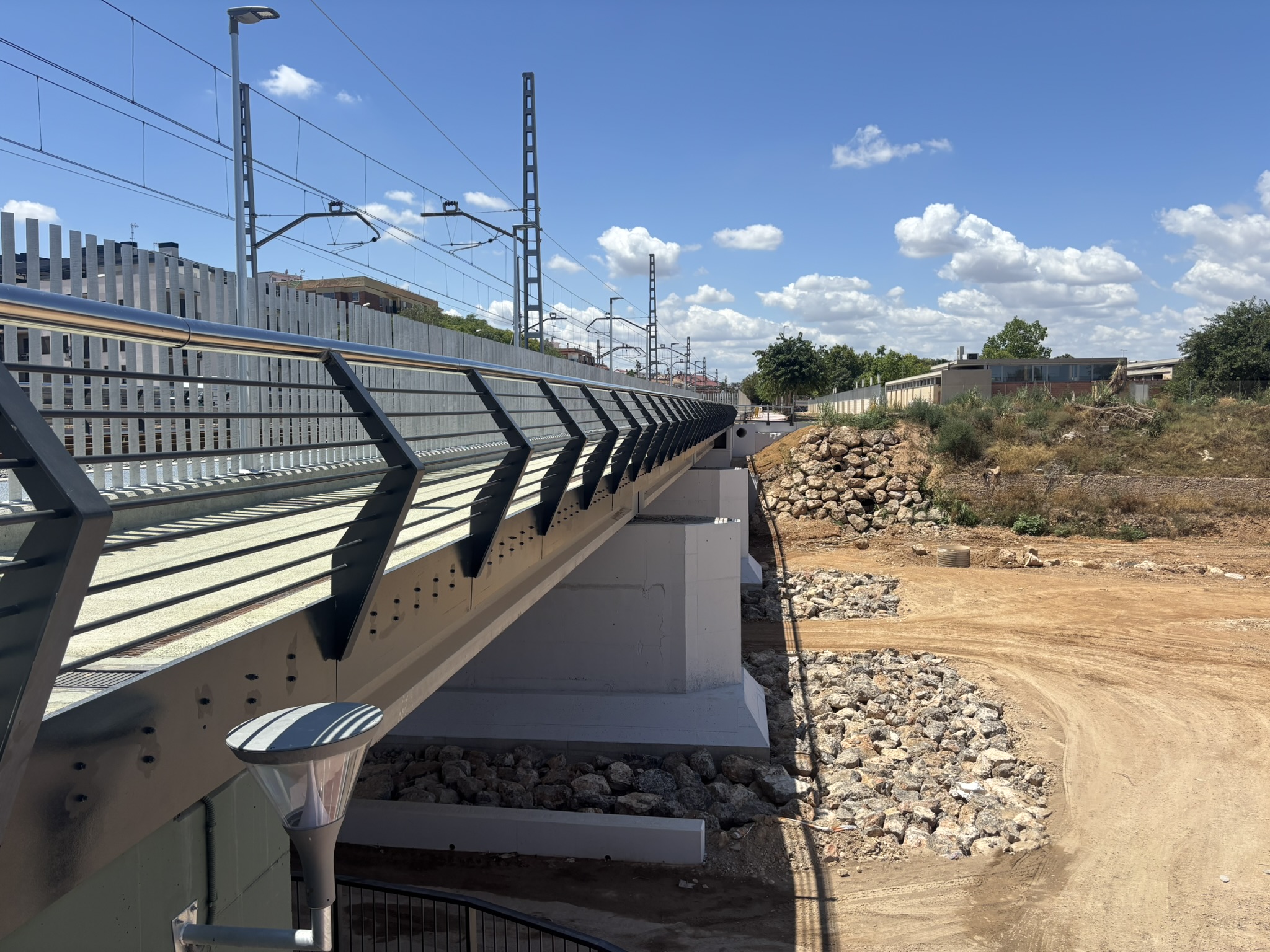 The project consisted of the reconstruction of the FGV railway bridge in Paiporta following the severe flooding of October 2024. The existing bridge deck had been rendered unusable after a concrete pedestrian walkway upstream collapsed and impacted the railway structure.