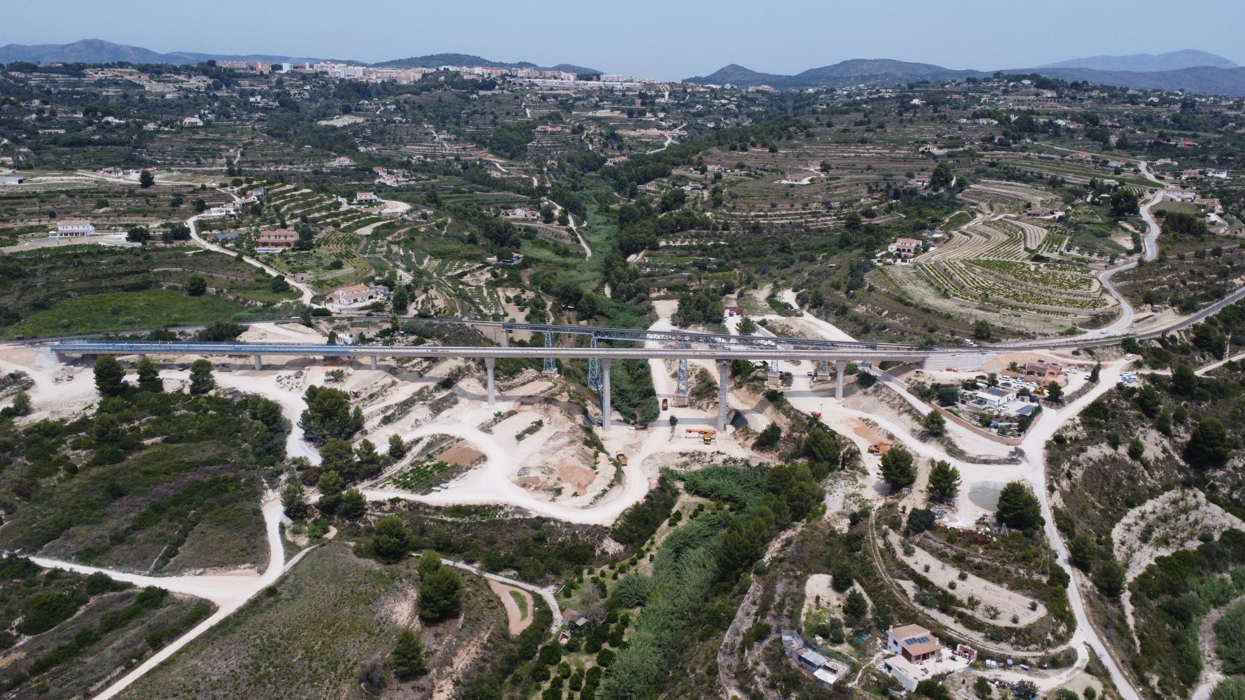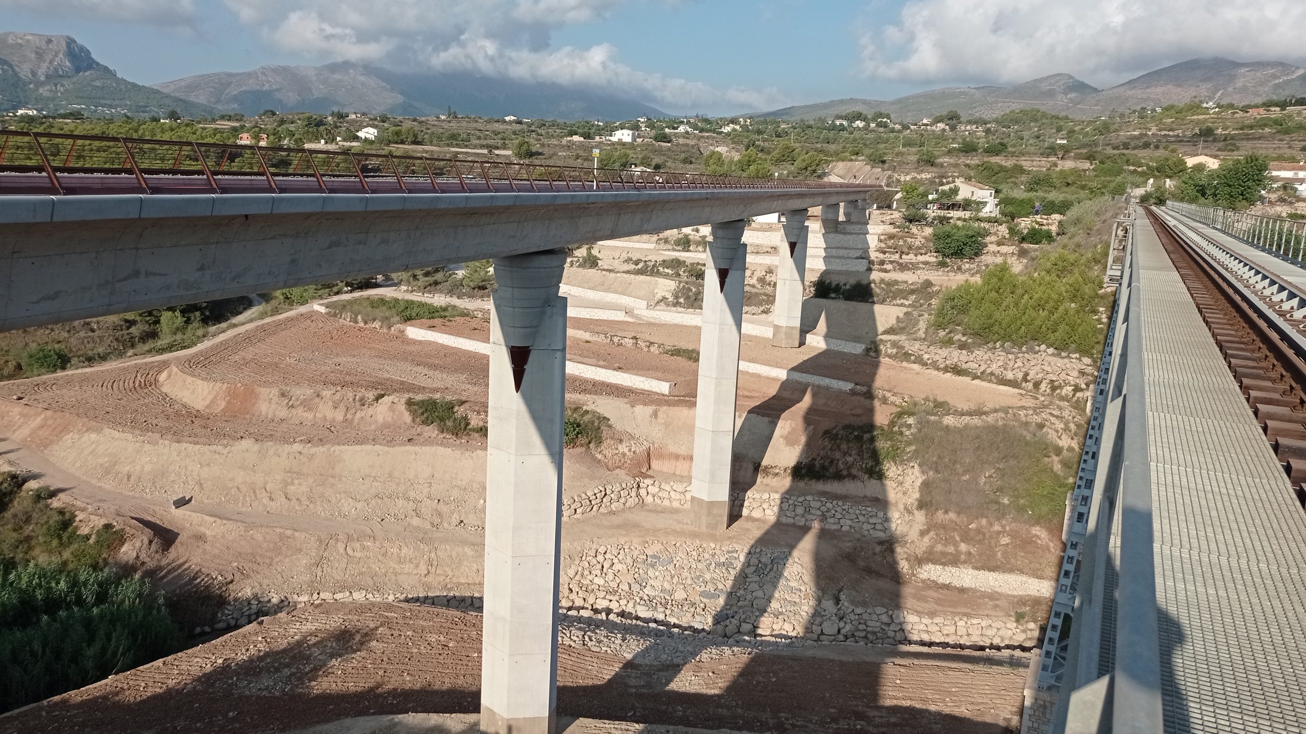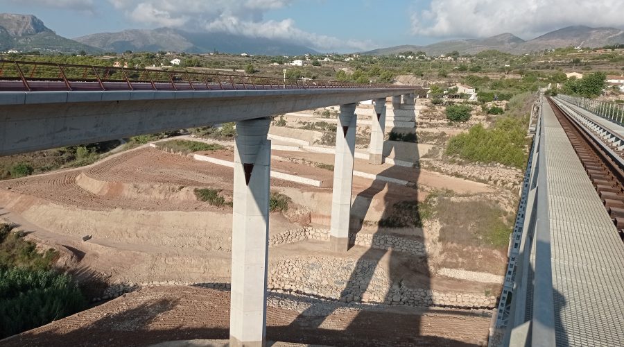 The New Quisi Bridge is a concrete railway bridge over the Quisi ravine, as an alternative to the existing 100-year old bridge. It consists of 8 spans, two end spans of 35m and six 50m midspans giving a total length of 370m. The superstructure is a continuous post-tensioned box girder with a curved surface supported by three types of concrete pier. Two small piers with a variable curved section, a V-shaped piler acting as fixed point and four high piers with a variable diamond cross section and conical capital. The abutments are formed of concrete with a curved and variable surface.