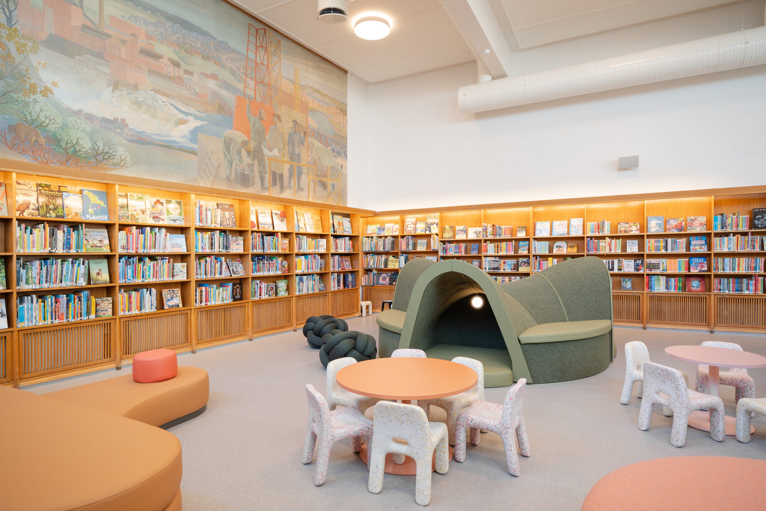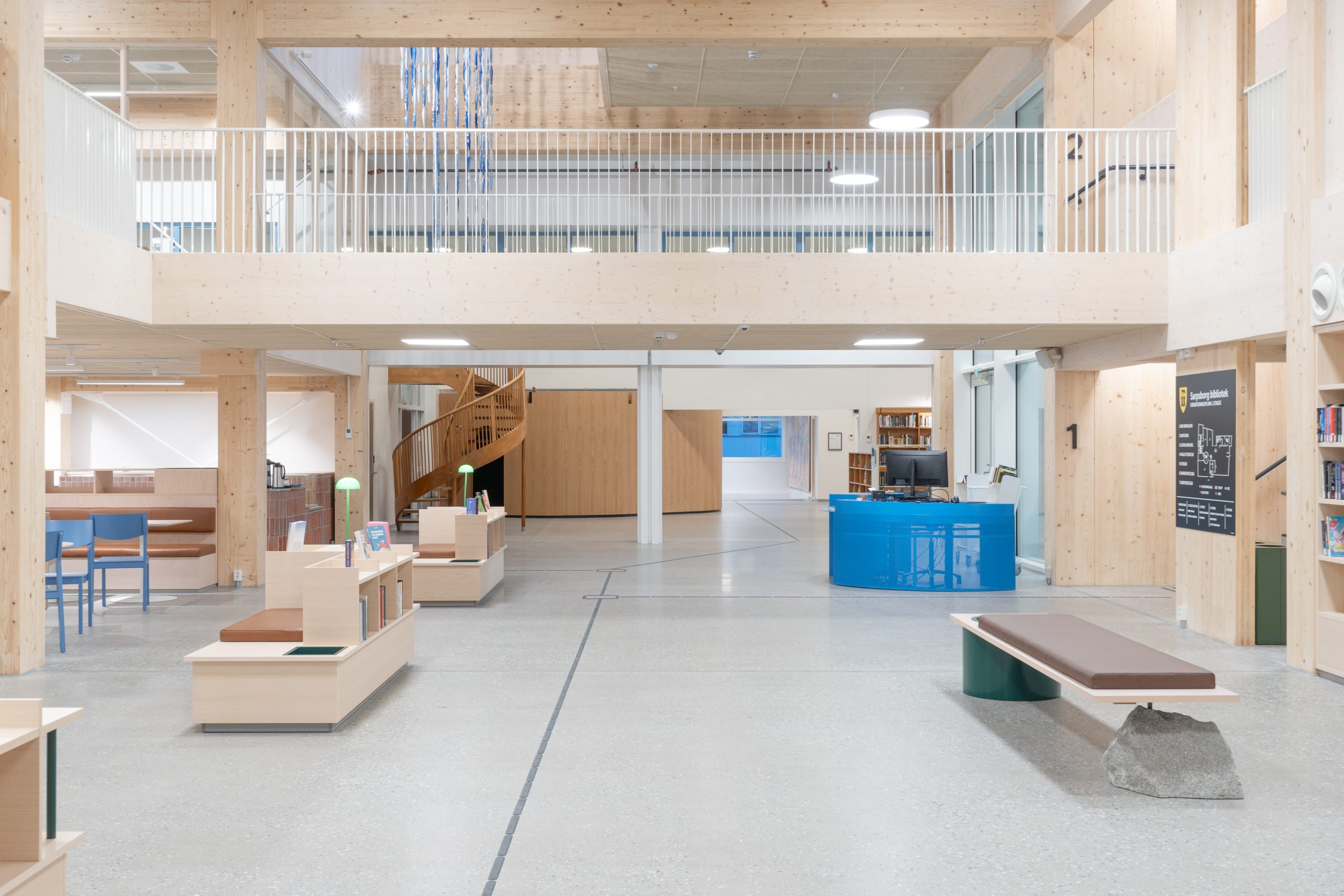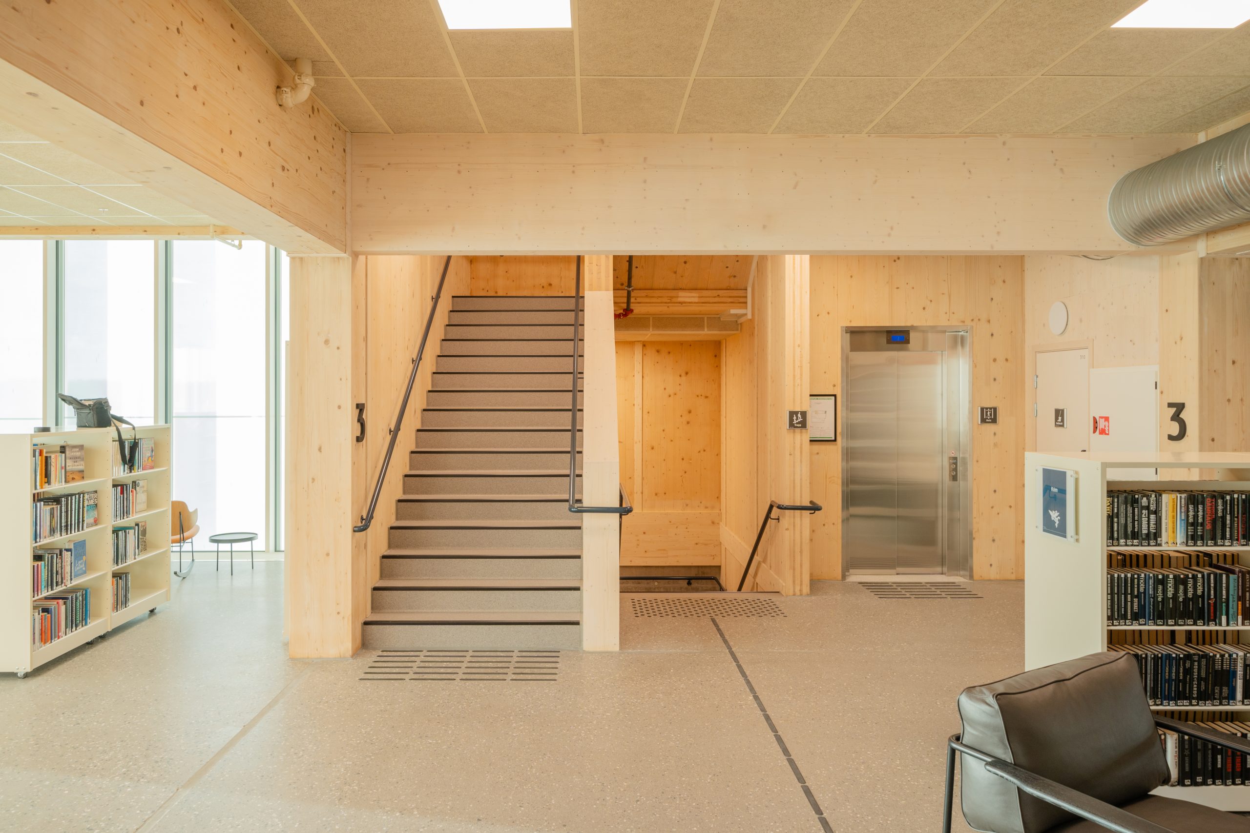 The new library in Sarpsborg is a natural gathering point for the city’s residents with its central location. The extension part is 1.800 m2 and has four stories. It’s built with glulam columns and beams together with CLT slabs and stabilizing walls. The roof structure is built with steel beams.